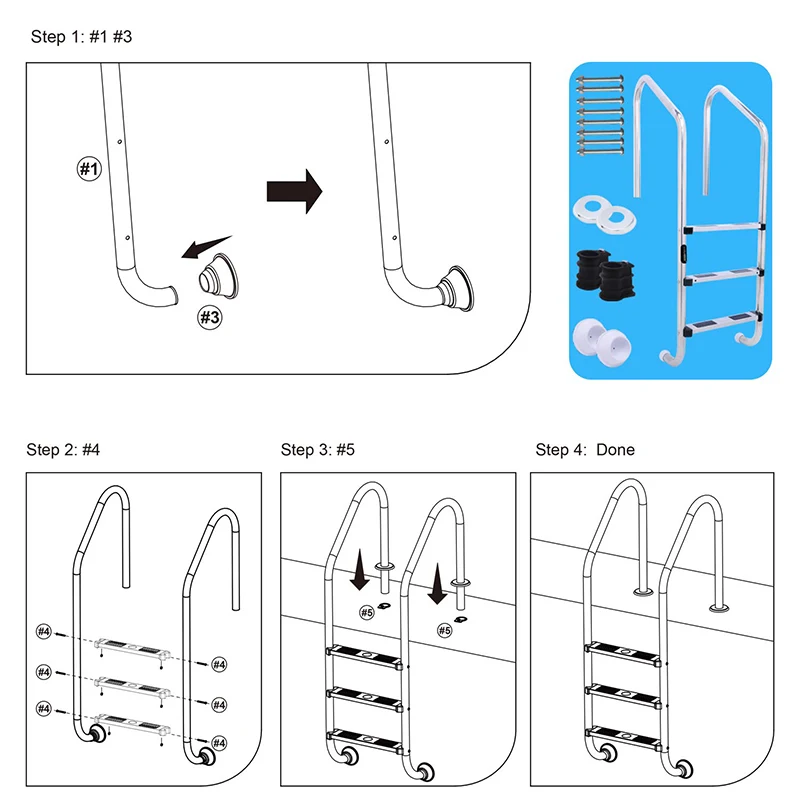 Best Seller Stainless Steel Swimming Pool Pedal Replacement Ladder Rung Steps Anti Slip Accessories XB 66